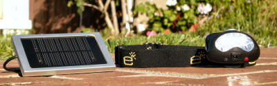 using a Garmin GPS, powered by the EL8 Headlamp- Solar Panel combination